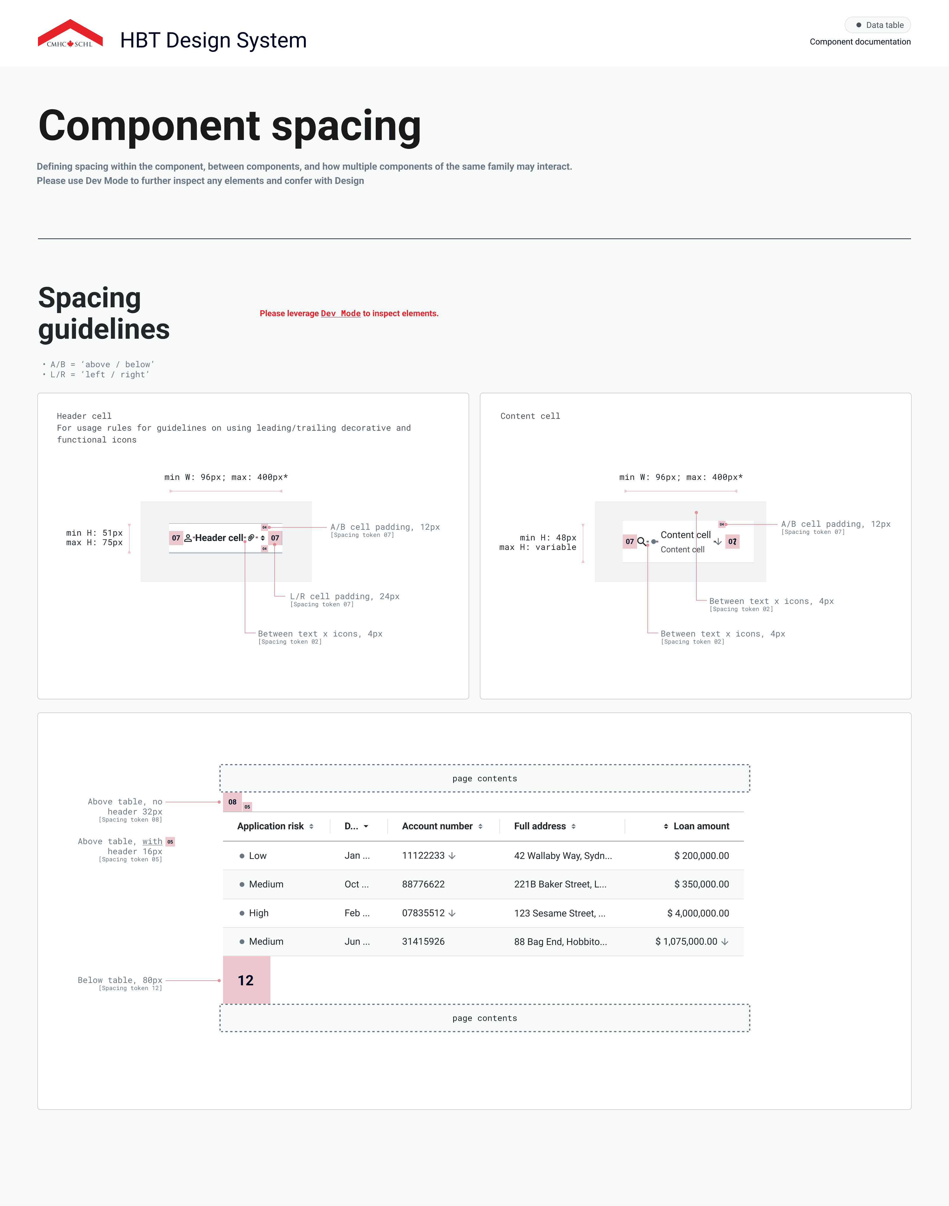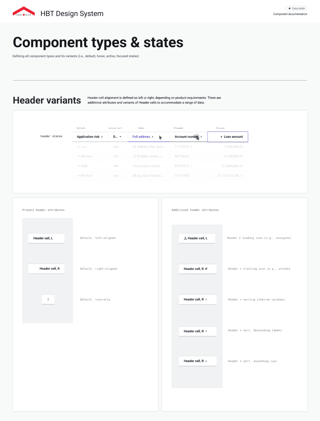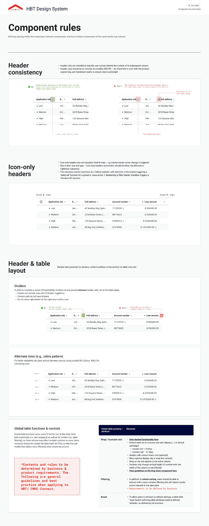 Hundreds of digital teams use HBT on a daily basis, including product designers, developers, BAs / PMs and QA. Providing comprehensive documentation is critical towards ensuring the design system can be implemented effectively, and improves comprehension between the partnering team members who use it. Our guidelines include detailed specifications about the master components, variants, property specifications, spacing, types / states, rules, and accessibility.