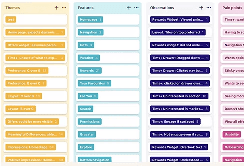 Testing sessions were transcribed and tagged in Dovetail, allowing us to extract key pain points, user behaviors, and recurring feedback