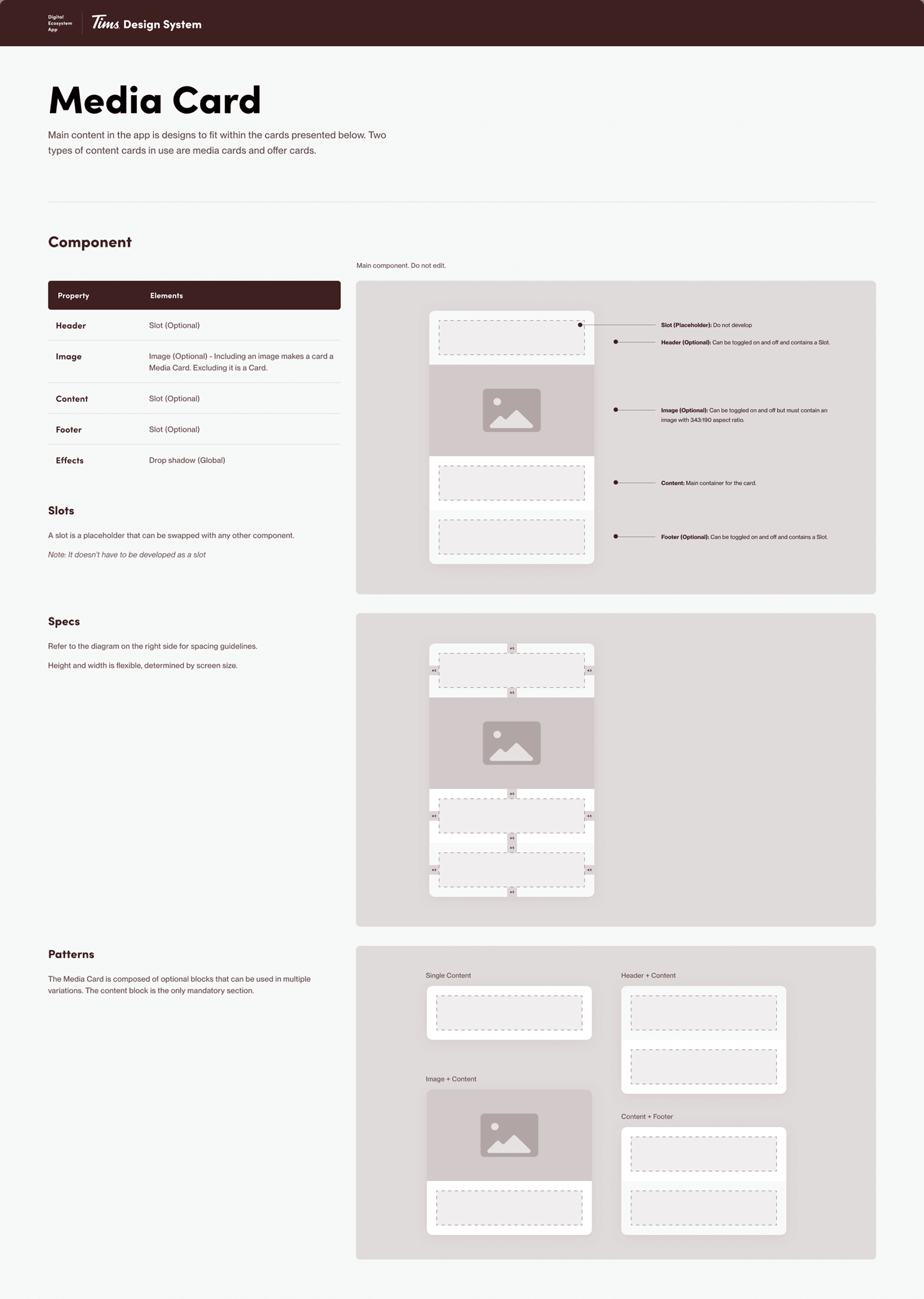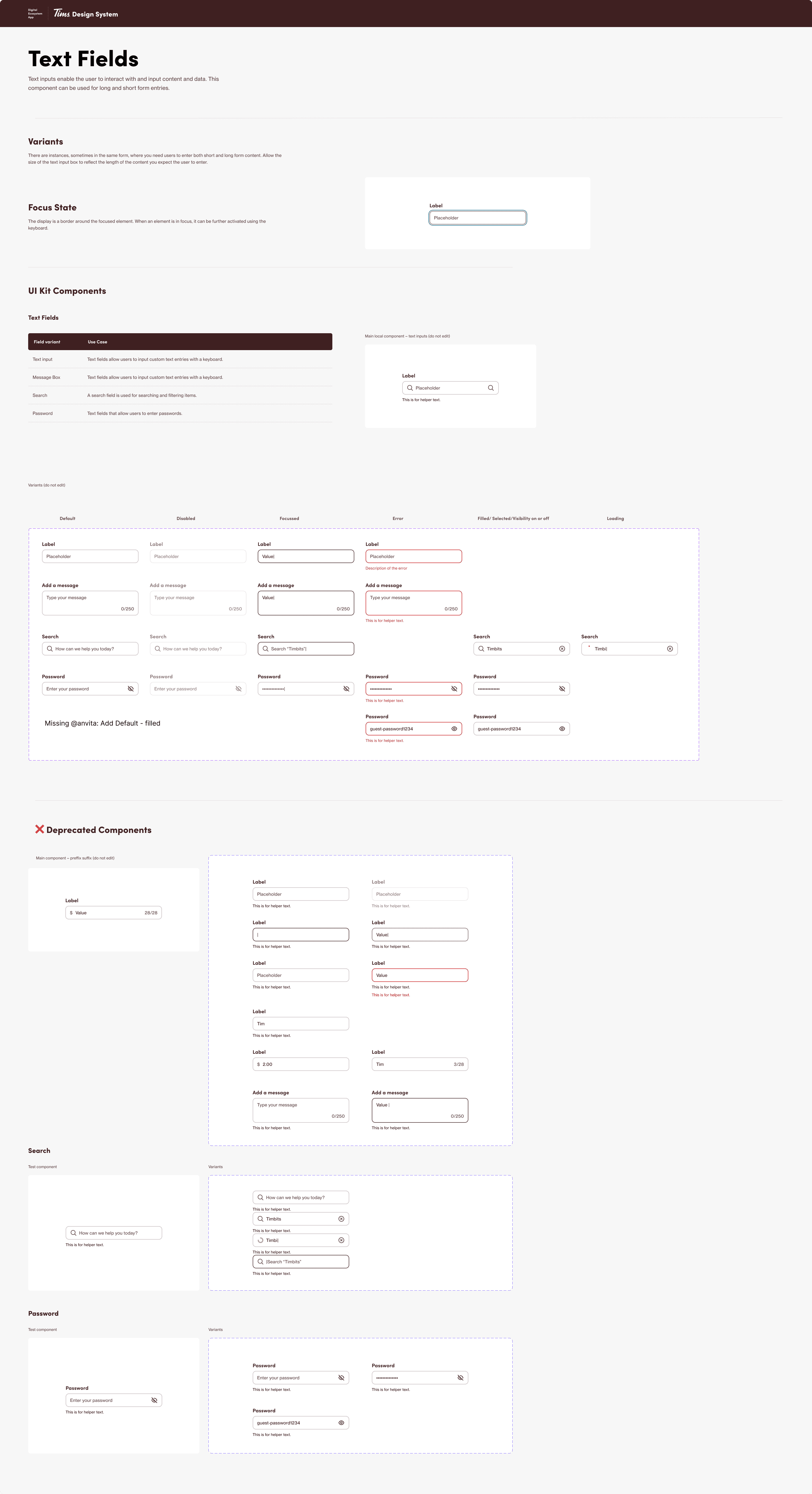 Include detailed component specifications, usage guidelines, and implementation notes that bridge design and development. Documented component behaviours, responsive considerations, and state changes to ensure consistent implementation.